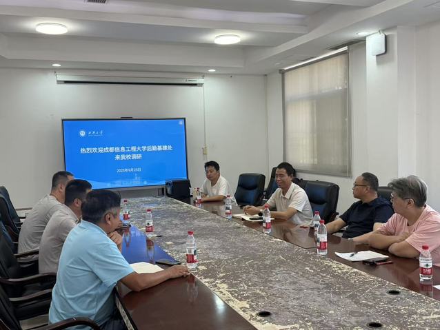 2025年9月25日,成都信息工程大学后勤基建处李璘来书记一行到我校调研交流。钟瀚处长代表基建处对李书记一行的到来表示热烈欢迎,并介绍了我校基建、修缮工作的情况。双方就校园基本建设工作中十五五基本建设规划编制、学生宿舍建设等相关经验、做法进行了交流。