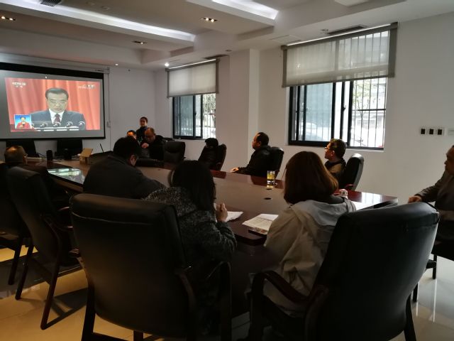 万众瞩目的十三届全国人大一次会议于3月5日开幕,上午9:30,基建处全体职工在会议室集体观看十三届全国人大一次会议开幕,听取李克强总理的政府工作报告。