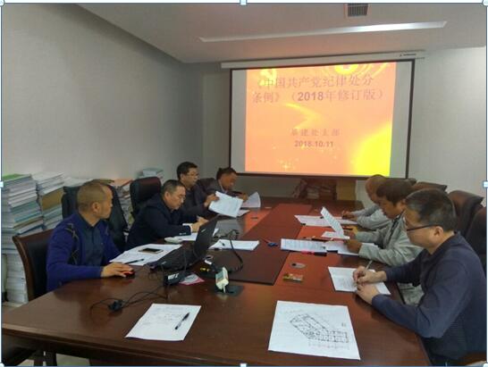 2018年10月11日,基建处全体党员同志在支部书记吴永成同志带领下,学习《中国共产党纪律处分条例》,经过学习及热烈讨论。同志们对新修订的《中国共产党纪律处分条例》有了更加深刻的认识。